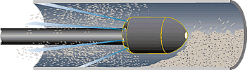 Durch Spülen der Rohrleitungen mit einem Hochdruckreiniger oder